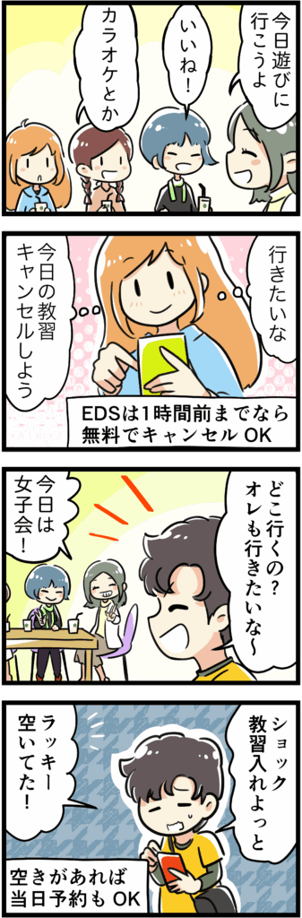 ネット予約があっても当日予約は対象外、なんてことは当校ならありません。1時間前までならネットで予約もキャンセルもOK!電話じゃないから、待たずにアクセス。